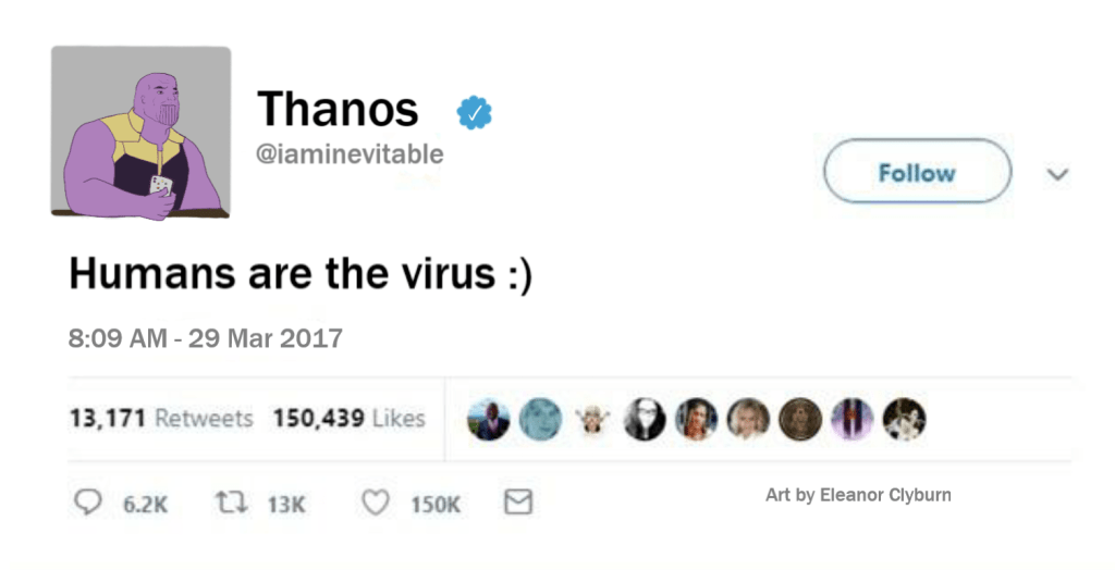 @Monituh_m. “Humans are the real disease.” Twitter, 26 March 2020.