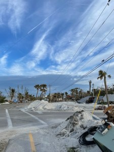 There were piles of debris lining the sidewalks everywhere we went, which large semis would scoop up by a crane to dump in the back of their truck to take to designated dump sites. These sites were previously wooded and protected areas that had been wiped clear for mountains of trash. One site had been an ongoing fight between developers and conservationists because the area was a nesting site for bald eagles. The people of Sanibel had raised money to conserve the land and had reached their goal before the hurricane. My mom and I were devastated to see it being used to field trash, and it made us wonder what would come of the land following the hurricane.