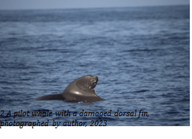 However, many of the pilot whales I observed had been negatively affected by tourism. Ferry boats transport tourists between various Canary Islands, crossing through territories pilot whales are known to occupy. Consequently, many whales are victims to collisions with these large tourist ferries, causing injury, and sometimes death. In other instances, smaller boats have collided with whales, causing damage to their dorsal fins.