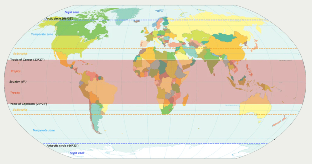 The taste of a cup of coffee is influenced by a myriad of variables – roasting, grinding, brewing – however the fundamental flavour profile is first dictated by the region of growth. Coffee is predominantly grown within a longitudinal window known as the Bean Belt (Figure 1), situated between the tropics, and flavours can be roughly grouped continentally.