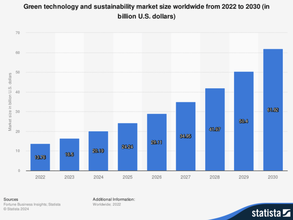 Figure 1: Green Market Size Globally 2022-2023, From Laricchia (2023)
