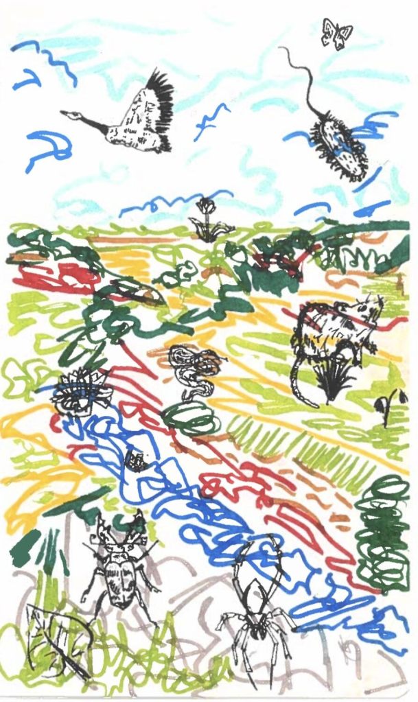 It seems that teaching-to-see is a central project of environmental literature. The child-gaze of Hildyard’s narrator facilitates voracious noticing which magnifies detail and takes others seriously. Expand this form of noticing into your own life, really pay attention to something, and it seems hard to stop yourself from caring at least a bit. Once you notice the foxes in your garden or the plastic cups in the river, they become part of your world and you part of theirs – you are bothered, involved, in their business. ‘Everything shapes what it encounters’. When you notice other lives and other systems, you notice your impact on them, and this seems to go some way towards enabling responsibility.