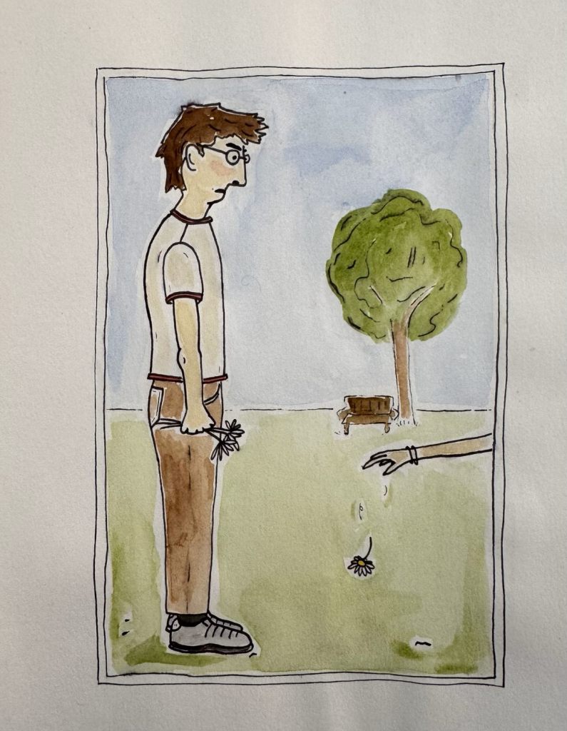 Stepping outside she caught sight of a daisy,