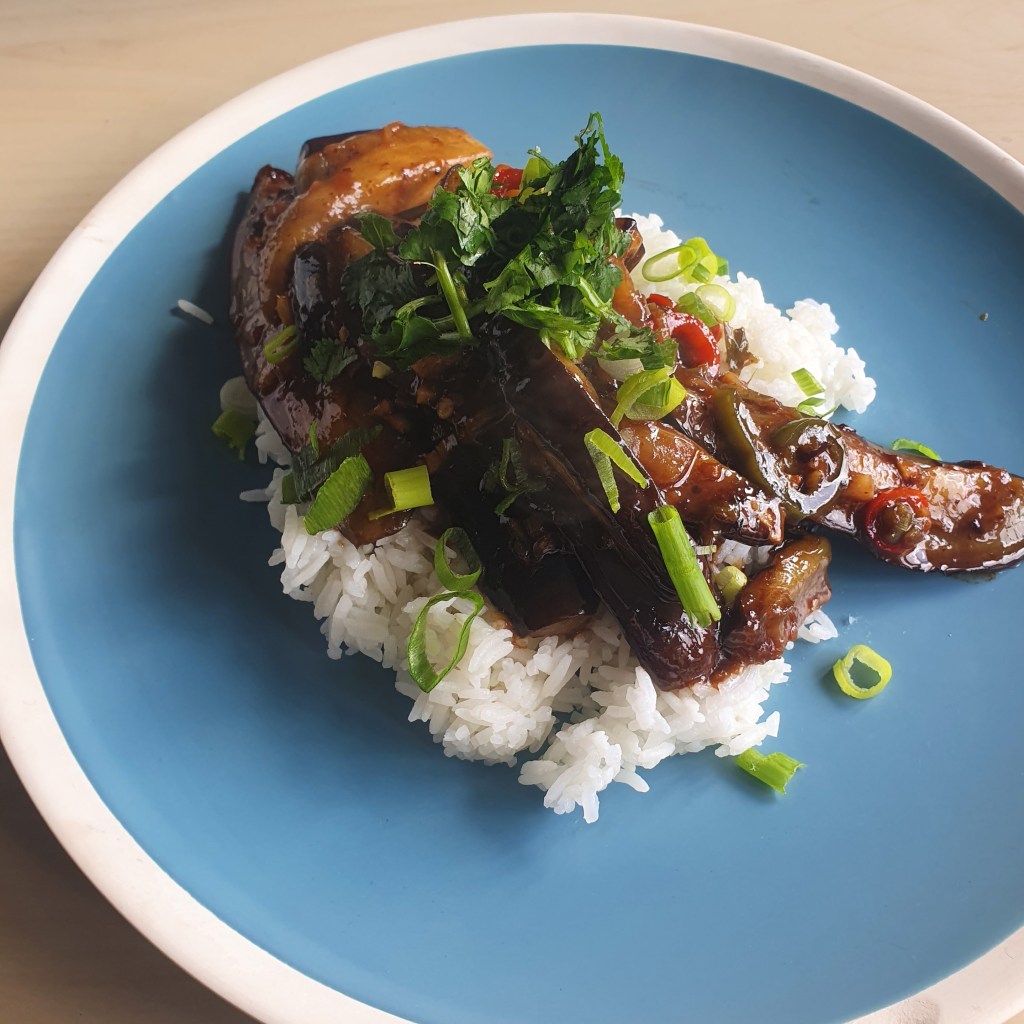 8. Add the chili cornstarch sauce, and then add back the eggplant, tossing until coated in the sauce.